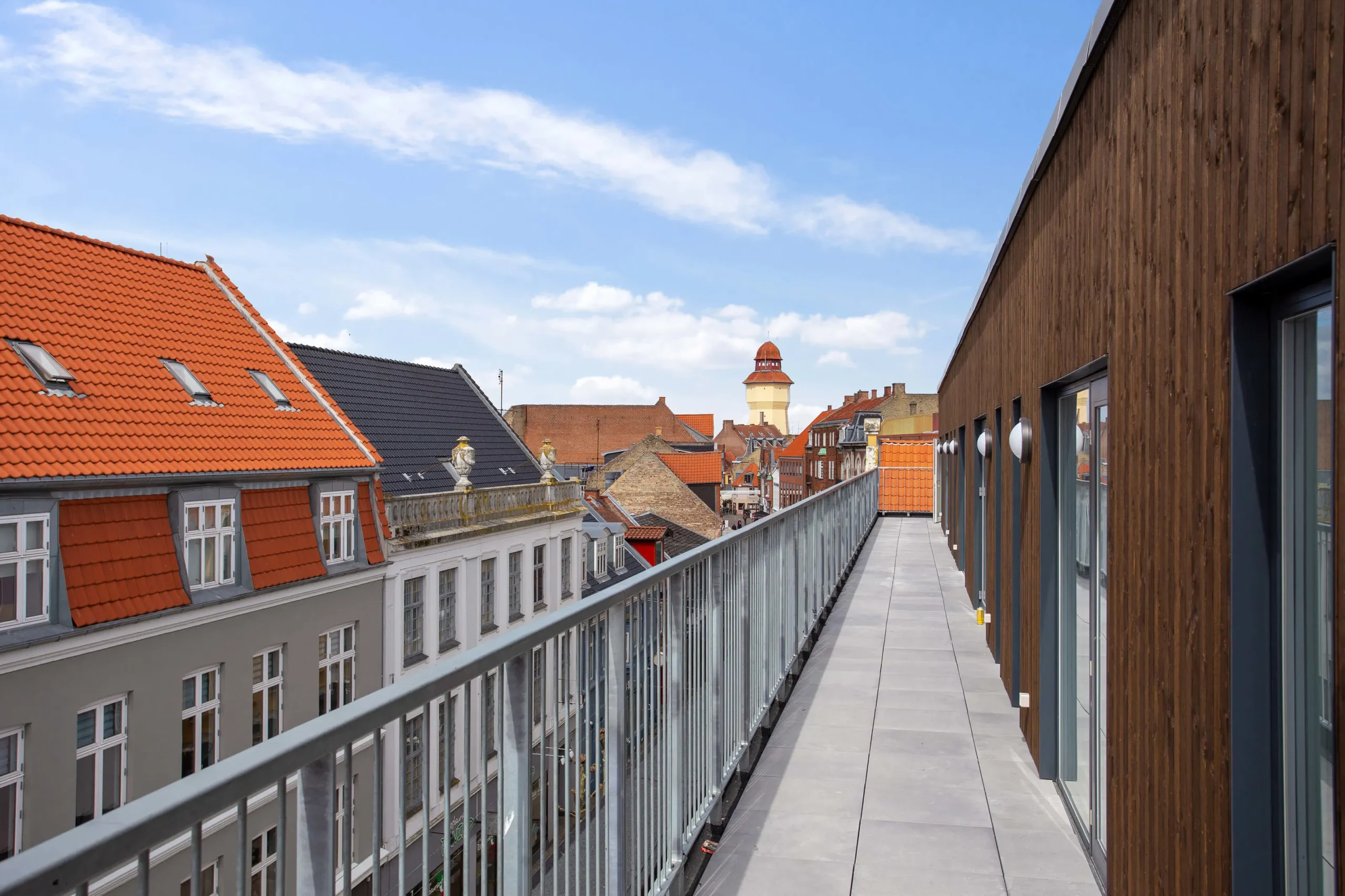 Lejlighederne har fælles tagterrasse på 1. sal, ligesom