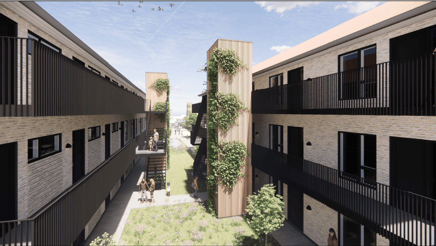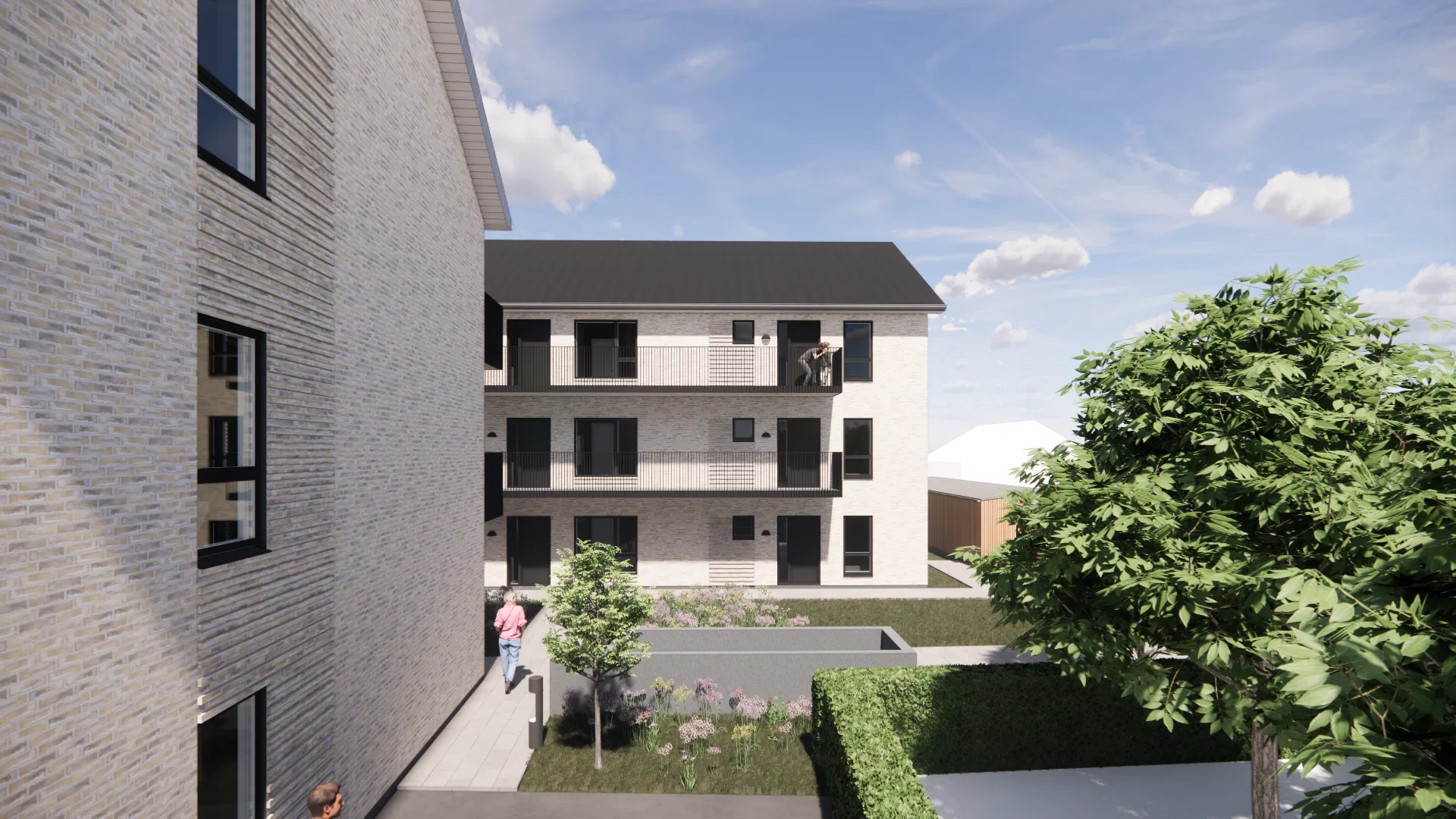 Valdemarsgård er et nyopført boligområde centralt i Vordingborg, hvor tre længehuse omkranser et grønt og levende gårdrum. Her mødes moderne arkitektur, bæredygtighed og fællesskab i en gennemtænkt helhed. De 51 lejligheder varierer fra 66 til 101 m² og henvender sig til både familier, unge og seniorer, der ønsker en nem og tryg hverdag midt i byen